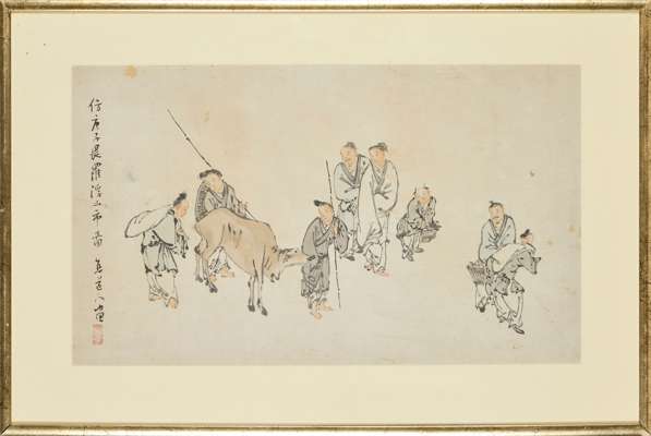 Su Liupeng, courtesy name Zhenqin, art name Zhendaoren, also known as Luofu Daoren. A native of Shunde, Guangdong, he is collectively referred to as the "Two Sus of the Lingnan Painting" along with Su Renshan. He excelled at painting folk scenes and figures, and his works reflect the daily activities of people during the mid-Qing Dynasty. His painting style drew from the Song and Yuan dynasties and was influenced by the Fujian school painters Shangguan Zhou and Huang Shen, particularly excelling in fine brushwork. Su Liupeng’s paintings are in the collections of The Art Museum of The Chinese University of Hong Kong, the Guangzhou Museum of Art, the Shanghai Museum, and Hong Kong Museum among others.