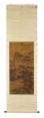 ink and light colour on silk, with inscriptions, signature and seals, dated to the Second Yuan You year, corresponding to 1087AD, hanging scroll