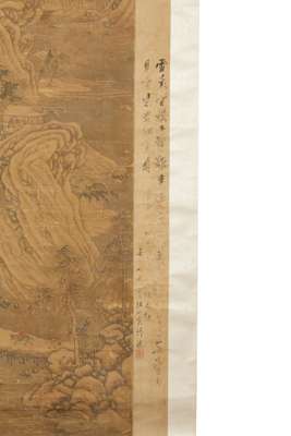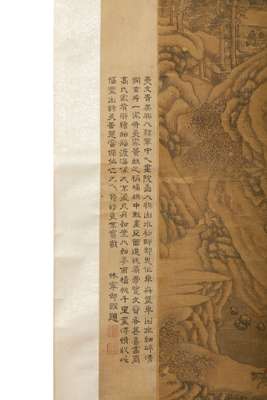 燕文貴款 雪山訪道圖 水墨絹本立軸