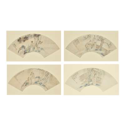 GROUP OF FOUR CHINESE 'FIGURAL' FAN PAINTINGS