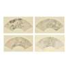 each ink and colour on fan-shaped paper, depicting figures, signed and a seal of the artist, framed (4)