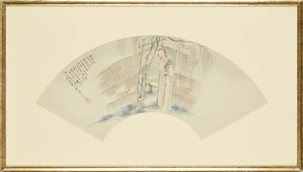 Three paintings acquired by Sir James Stewart Lockhart (1858-1937) through Tse Tsan-tai (1872-1938), Hong Kong, July 1911 for HK $15 with three other fan paintings by the same artist (Sir James Stewart Lockhart, Notebook, dated 1910-1921, p. 364, NLS Acc. 12695/26c); The last (depicting a figure of a maiden standing at the door) possibly same as above;