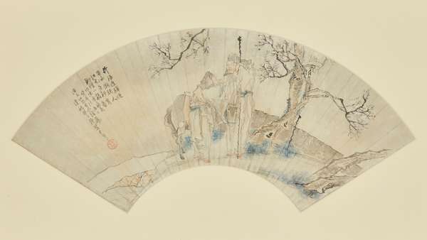 錢慧安 (1833-1911), 字吉生,是「豫園書畫善會」的首任會長,海派代表人物之一。他早年出身民間畫師,筆下人物多為喜慶吉祥題材,造型豐潤,頗有福相。他獨創以自畫像入畫,將文人畫風帶入民間藝術,程十髮譽其為「海派藝術宗師」。