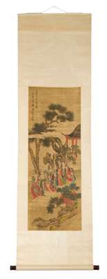 ink and colour on silk, with inscriptions, signatures and seals, dated to Yi You year, corresponding to 1645AD, hanging scroll