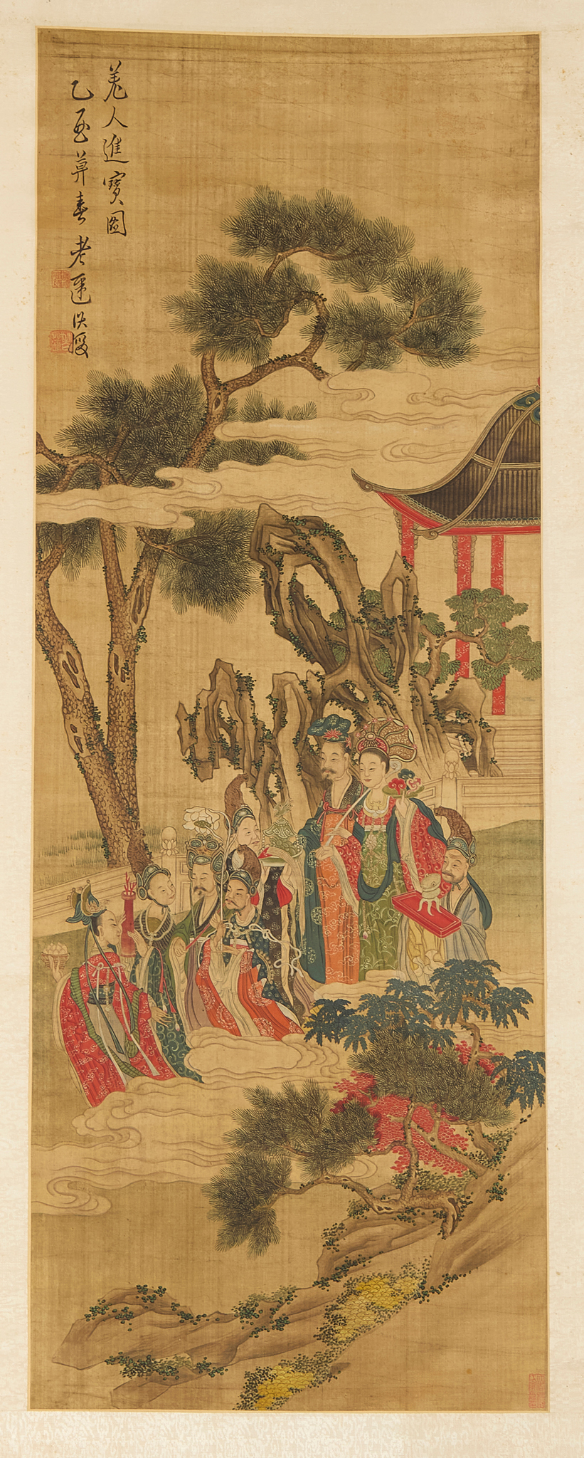 款識:羌人進寶圖,乙酉▢春。老蓮洪綬。