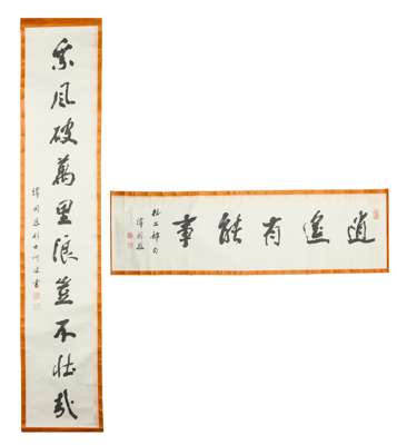 譚國恩 行書書法 水墨紙本 卷軸及立軸(共兩幅)