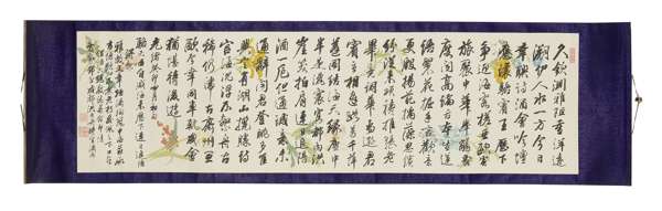款識:久欽淵雅阻秀洋,遠溯伊人水一方,今日幸聯訪酒會,吟壇應讓駱賓王,歷下爭近海客槎,亞歐賓旅聚中華,舉觴幾度開高論,舌本生蓮語粲花,握手言歡意更殷,揚花摛▢思繽紛,▢來項禱推張老,畢竟詞華尚遜君,賓主相逢▢▢,千庠▢同結海天,緣塵中半是瀛寰,客都洪崖▢拍肩,連日追陪酒一卮,但通誠意未通辭,▢君登眺多▢興,空有湖山攬勝▢,官海沉浮不▢舟,古稀仍潘古齊州,亞歐今▢同車軌,盛會猶堪待潑遊。光緒癸卯四月初旬,駱大臣自威海來歷下連日追陪得祝,雅教文章經濟洵冠中亞並承吉語頻加不棄老朽盛佩之下口▢,俚語六絕敬誌遇合,即請方家郢正,成都洪用舟時官濟南
