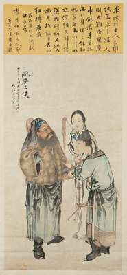 周上官款 《風塵三俠》 水墨設色紙本 立軸