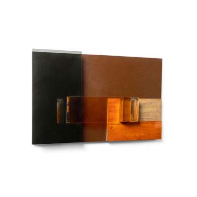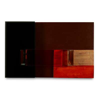 wood, mirror and perspex relief on board
