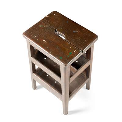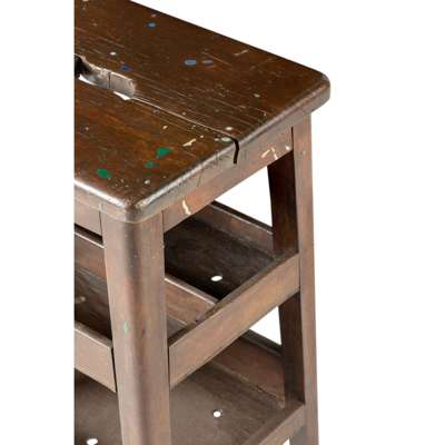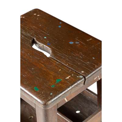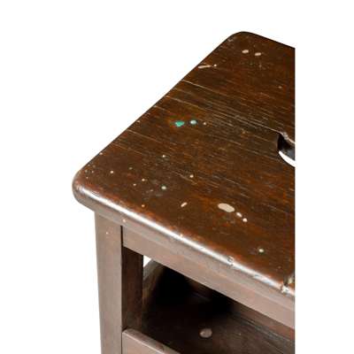 found oak stool, inlaid with mother of pearl, coral, lapis lazuli, turquoise and malachite
