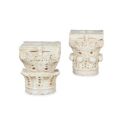 TWO BYZANTINE WHITE MARBLE CLOISTER CAPITALS