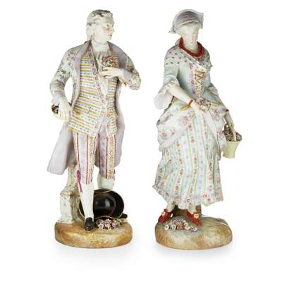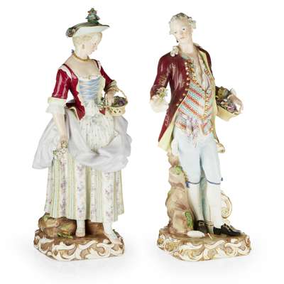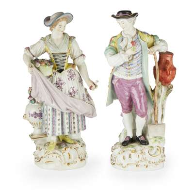 PAIR OF MEISSEN FIGURES OF A GARDENER AND COMPANION