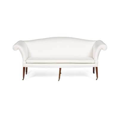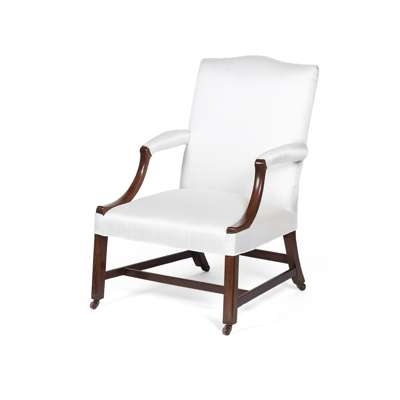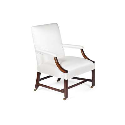 LATE GEORGE III MAHOGANY FRAMED WINGBACK ARMCHAIR