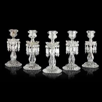 THIRTEEN BACCARAT GLASS CANDLESTICKS