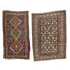 the first of Konagkend pattern, the indigo field with allover stylised lattice pattern, within indigo Kufic border; the second with indigo field with three stepped polychrome medallions, within narrow ivory geometric border (2)