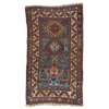the indigo field with three polychrome hooked lozenge medallions, within ivory hooked leaf border