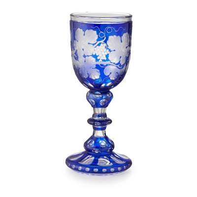 BOHEMIAN BLUE STAINED ETCHED AND ENGRAVED GLASS WINE GOBLET