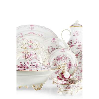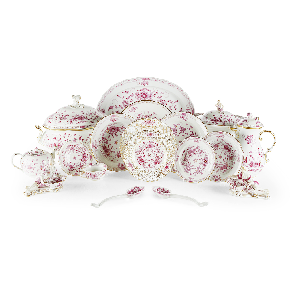 MEISSEN 'INDIAN PINK' PORCELAIN PART DINNER, TEA AND COFFEE SERVICE