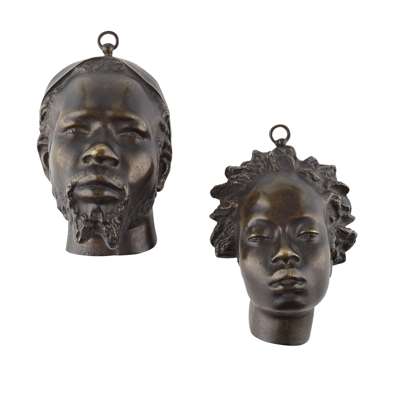 PAIR OF BRONZE MASKS, 19TH CENTURY