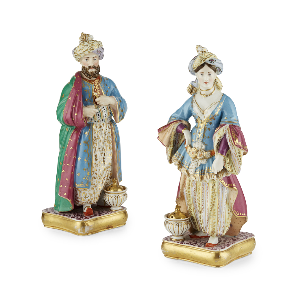 PAIR OF PORCELAINE DE PARIS FIGURES OF OTTOMANS