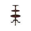 with three dished tiers raised and divided by baluster spiral carved columns, raised on a tripod base ending in carved claw and ball feet