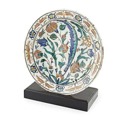 OTTOMAN TURKEY IZNIK POLYCHROME AND GILDED PLATE