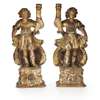 PAIR OF ITALIAN GILTWOOD AND POLYCHROME FIGURAL CANDLESTICKS