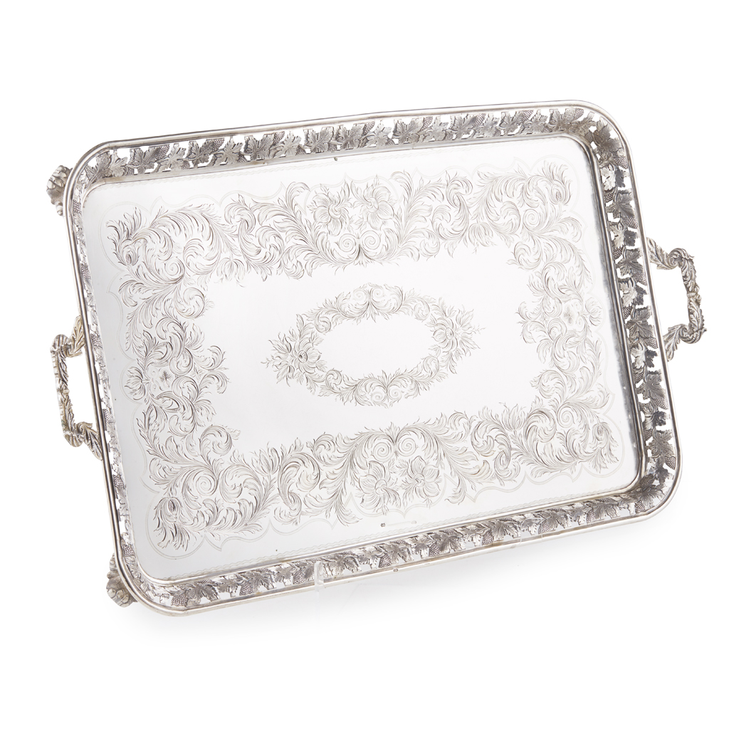 LARGE PORTUGUESE SILVER TWIN-HANDLED TRAY