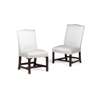 the serpentine toprails above serpentine stuffover seats, raised on square tapered legs joined by stretchers and ending in brass castors, covered in white silk upholstery (2)