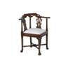 the curved toprail carved with acanthus leading to scroll arms, above pierced vasiform splats and a drop-in padded seat with gadrooned seat rail, covered in white silk, raised on cabriole legs joined by turned stretchers, the foreleg ending in a claw and ball foot
