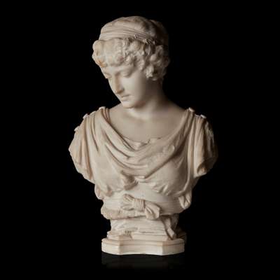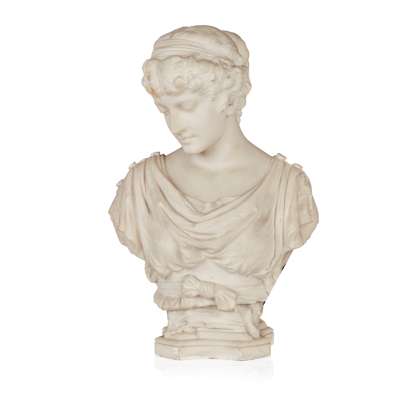 white marble, on shaped platform base, signed ‘Wm Couper FLORENCE’