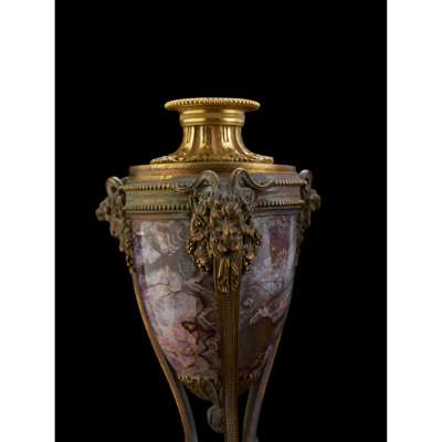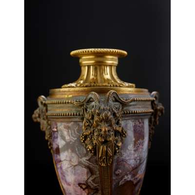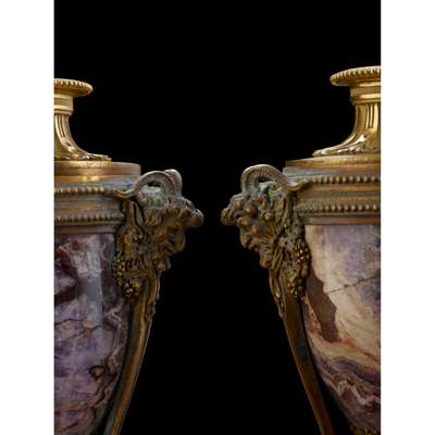 A PAIR OF GEORGE III BLUE JOHN AND ORMOLU CASSOLETTES