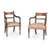 comprising a pair of armchairs and twelve side chairs, with shaped bar backs on reeded uprights, above stuffover seats raised on tapered legs (14)