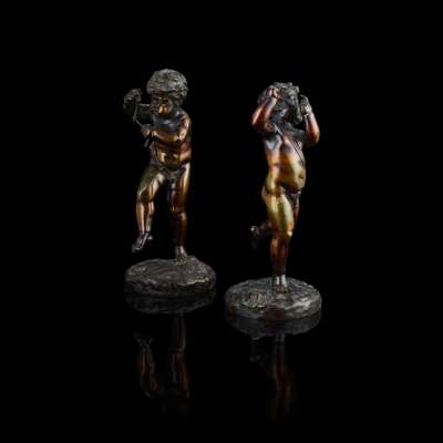 A PAIR OF FRENCH BRONZE FIGURES OF MUSICAL PUTTI, AFTER CLODION
