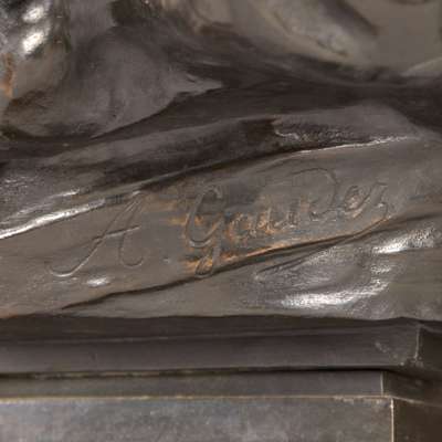 dark brown/black and gold patina, signed A. Gaudez, on rouge marble square plinths (2)