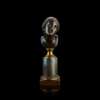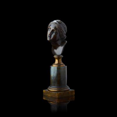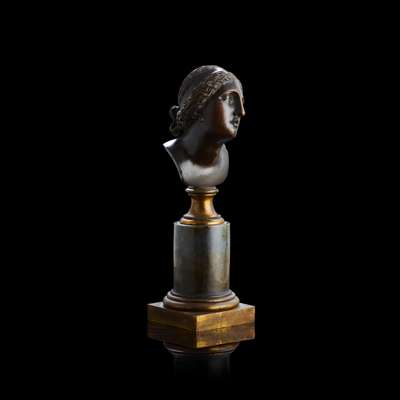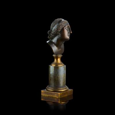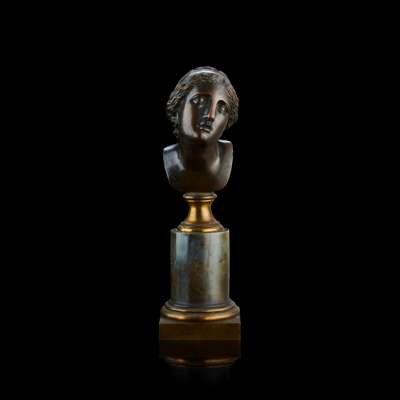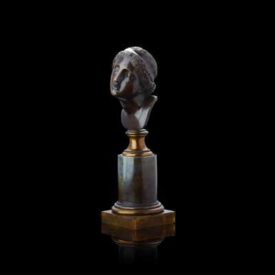 medium brown patina, on a gilt metal socle and grey marble an gilt metal column base