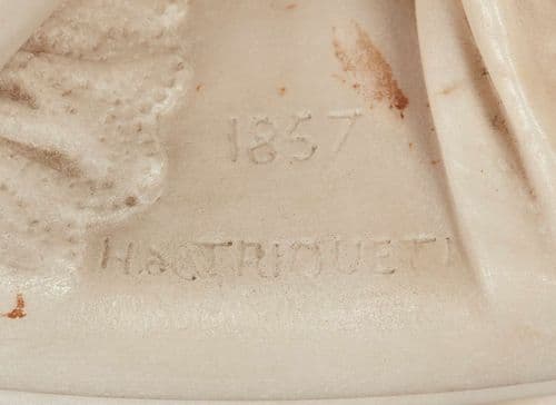 Henri-Joseph-François de Triqueti was one of the foremost sculptors of the 19th century, and was highly regarded in his lifetime. Trained as a painter, by 1830 he focused primarily on sculpture where he found his greatest success, eventually securing patronage from King Louis-Philippe and becoming the official sculptor of the July Monarchy. After the Revolution of 1848 Triqueti relocated to England where he quickly was able to establish himself with new patrons and commissions, again with royal backing. One of his most celebrated pieces was the marble cenotaph of Prince Albert in the Wolsey Chapel at Windsor, who was a patron and admirer of Triqueti’s work.