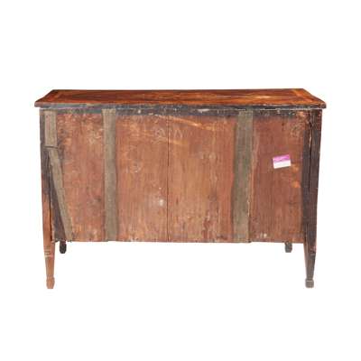 AN ITALIAN WALNUT AND OLIVEWOOD MARQUETRY COMMODE