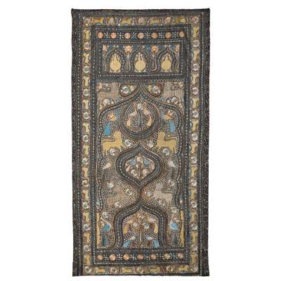 AN INDO-PERSIAN SILK AND WOOL EMBROIDERED HANGING
