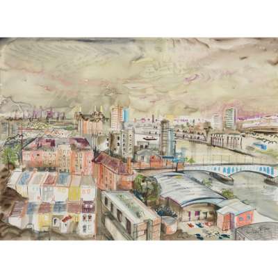 signed, watercolour, gouache, pastel, charcoal, pencil and ink on Arches cold pressed paper