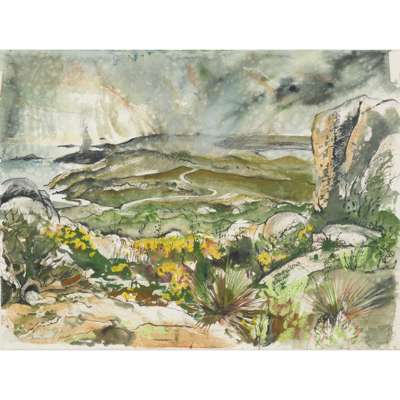 signed, watercolour, gouache, ink, pastel and charcoal on Arches cold pressed paper