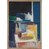Kinley was inspired by Nicholas de Staël’s own dance between abstraction and representation, whose work he had encountered when de Staël held an exhibition in London in 1953. Accordingly, Studio Interior with Window possesses recognisable spatial depth and structure, but this is realised through the use of abstracted shapes. Colour appears to have been applied schematically, with an acknowledgement of light and shadow, but an overriding attention to the atmosphere the studio’s atmosphere.