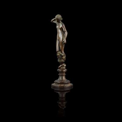 A VENETIAN/PADUAN BRONZE FIGURE OF WOMAN BEING SWALLOWED BY A DRAGON