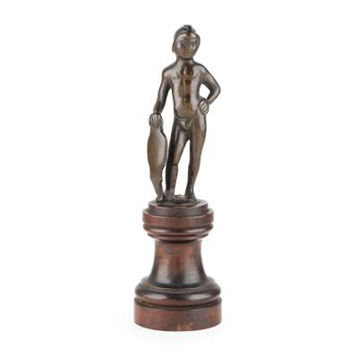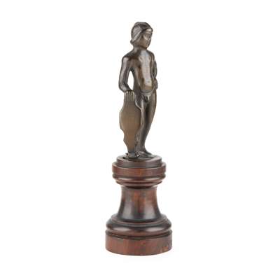 NORTH ITALIAN SMALL BRONZE FIGURE OF A PAGE WITH A SHIELD