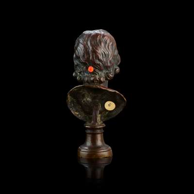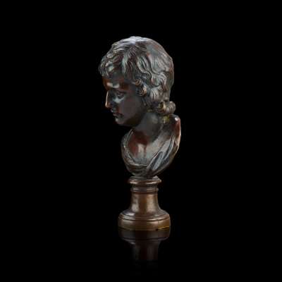 Note: Produced as a companion piece to a bust of the Virgin. Models in terracotta for the pair were in the collection of Cardinal Francesco Barberini in Rome. Duquesnoy produced two pairs of casts in silver including one for Queen Henrietta Maria in London. Subsequent pairs cast in bronze were produced during the latter half of the 17th century.