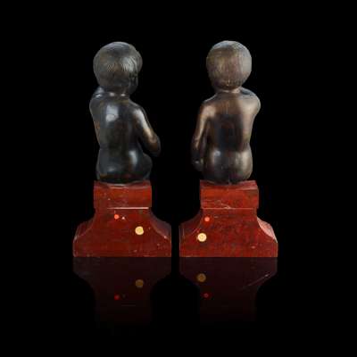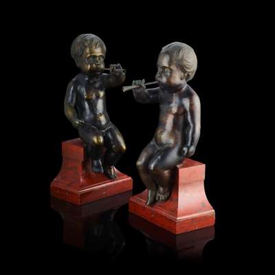 A PAIR OF NORTH EUROPEAN BRONZE FIGURES OF MUSICAL INFANTS