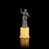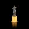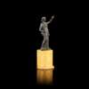 dark brown/black patina, the figure with one arm raised the other hand holding an apple, on a siena marble pedestal