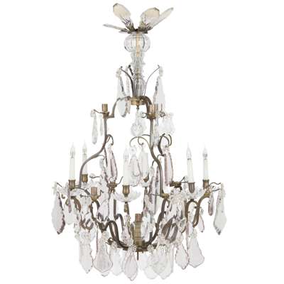 A LOUIS XV STYLE BRONZE AND CUT GLASS CHANDELIER