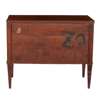 the banded rectangular top above two deep panelled drawers flanked by ivory pilasters to the angles, raised on short square tapering legs