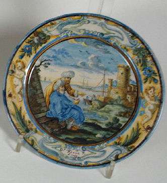 A small mid 18th century Castelli maiolica plate In the style of Carmine Gentili